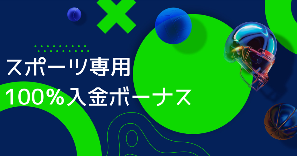 スポーツ専用のウェルカムボーナスもカジノと同様で入金額の100%、最大50,000円分の入金ボーナスがもらえます。間違いなくお得なボーナスですが、獲得方法や注意点に違いがあるので注意してください。ちなみに、カジノ専用ボーナスはすでに使ったという場合も、別の入金の機会にスポーツ専用ボーナスも1回まで受け取れます!