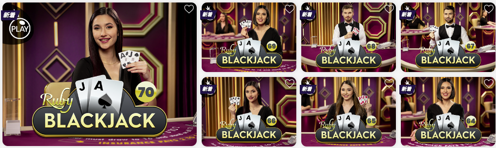 Pragmatic Play Live(プラグマティックプレイライブ)社の「Ruby BLACKJACK」が7テーブル新しく追加。
