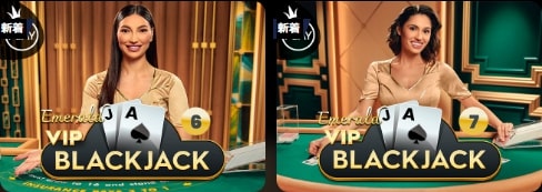 さらに、Pragmatic Play Live(プラグマティック・プレイ・ライブ)社のVIP Blackjack Emerald の6と7のテーブルが新たに追加となり、テーブル数が豊富で遊びやすくなっています!