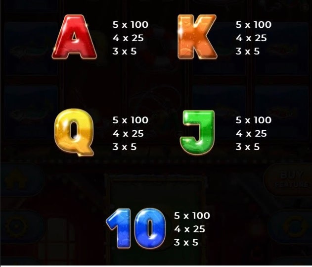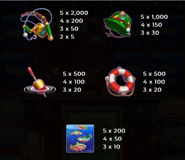 Trout’s Treasure Wild Christmasに登場するシンボルの中で最も高配当なのが、釣り竿で、そのあとに帽子、釣り道具、浮き輪、魚と続きます。