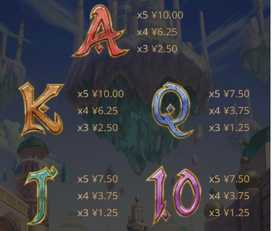 低配当シンボルは、トランプの数字のA、K、Q、J、10となっています。