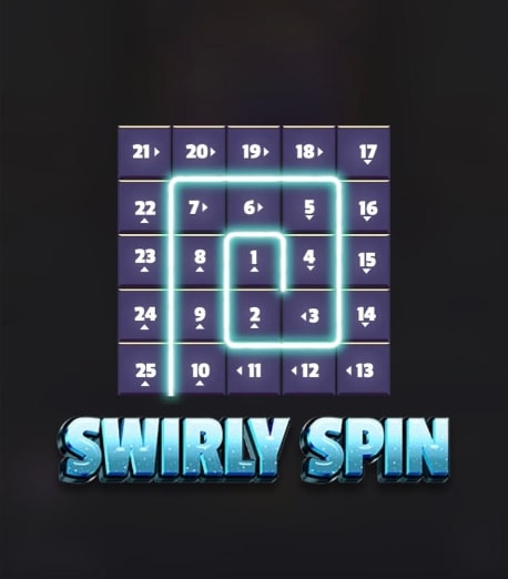 各シンボルはSwirly Spinと呼ばれる、らせん状のリール上を滑ります。リール上のシンボルは、以下のように左下から中央まで時計周りの渦巻き模様で表示されます。